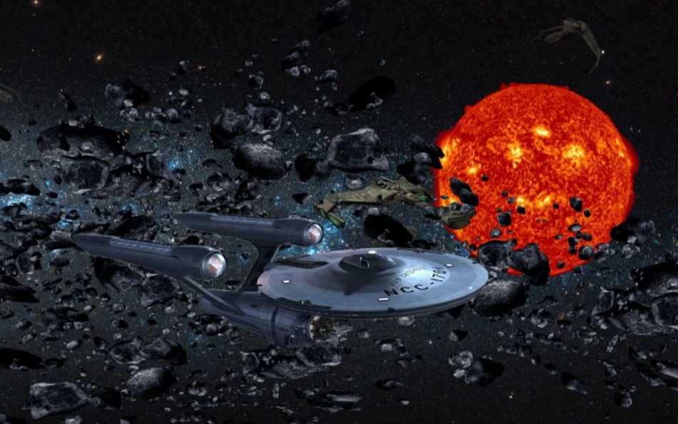 The Klingon battlecruiser fired just one moment too late as the Enterprise came to an abrupt halt. Its photon torpedoes missed cleanly and sailed passed well in front of the Enterprise. However, everything the Enterprise fired found its mark and the battlecruiser turned into a ball fire and metal debris.